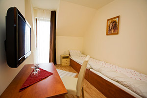Házunk 7 db 2 ágyas tágas, világos szobával rendelkezik. A szobák ablakai a lovak karámjaira engednek kilátást, így valóban a természet közvetlen közelében érezheti magát a kikapcsolódni vágyó. Szobáink televízióval, klímával, zuhanyzós fürdőszobákkal felszereltek.